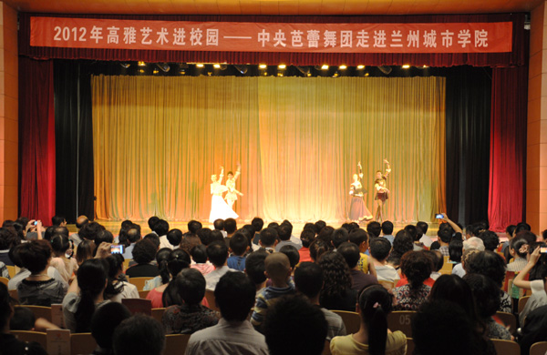 5月31日晚,2012年高雅艺术进校园——中央芭蕾舞团走进taptap点点专场演出在点点官网西校区礼堂精彩上演。中央芭蕾舞团副团长王全兴,校党委书记王兴隆,校党委副书记王汝锋,校党委常委、副校长刘举科、梁延堂、杨皖东,校党委常委、纪委书记王基,校党委常委、副校长莫超与各学院、部门的负责人及1500多名师生观看了演出。