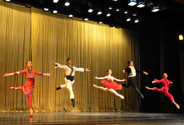 节目表演在优雅轻盈的《古典女子四人舞》中拉开帷幕,轻软的纱裙、灵动的气韵,由四名女演员演绎的这支浪漫主义经典白色芭蕾惊艳全场。芭蕾经典《天鹅湖》片段在悠扬舒缓的音乐声中曼妙上演,“白天鹅”与王子的双人舞用动人的芭蕾语言诠释爱的真谛,欢快活泼的《四小天鹅》舞步整齐,配合默契,重现了经典剧目的梦幻魅力。现代舞《施琅》动作刚劲有力、连绵淋漓,极富现代气息;《天鹅湖》西班牙舞热烈奔放,对比强烈的红黑色调服饰与特色鲜明的音乐给观众带来“一样的芭蕾、别样的风情”。《红色娘子军》常青指路,旋律亲切,英姿飒爽,带领全场师生重温红色经典。演员战薪潞和马晓东带来的《堂吉诃德》三幕双人舞以其完美默契的配合和令人叹为观止的技艺将整场晚会推至最高潮,掌声经久不息。