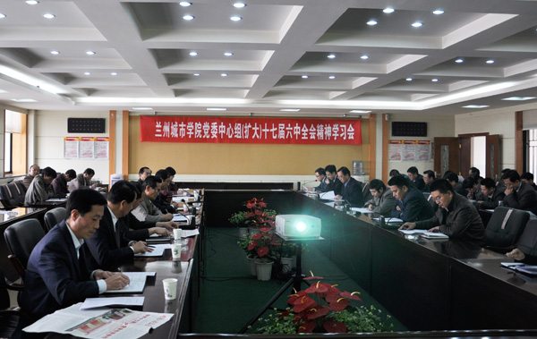 10月21日下午,学校在第二会议室召开学校党委中心组(扩大)学习会,学习贯彻十七届六中全会精神。校党委书记王兴隆主持会议并讲话。校党委副书记王汝锋,校党委常委、副校长刘举科、杨皖东、马振林,校党委常委、纪委书记王基,副校长姜秋霞与党委中心组成员、机关各部门负责人、各党总支(直属党支部)书记、各二级学院院长等与会者集体学习了《中国共产党第十七届中央委员会第六次全体会议公报》。