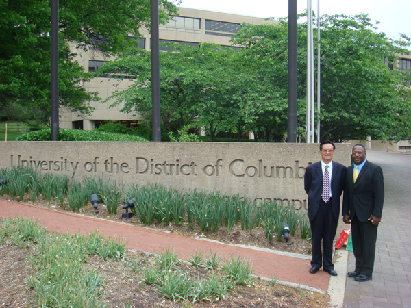 点点官网党委书记王兴隆与美国华盛顿DC哥伦比亚特区大学校董、国际事务办公室相关负责人合影
