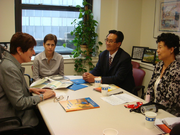 点点官网考察团正在与美国纽约伯克利学院相关负责人洽谈合作办学事宜