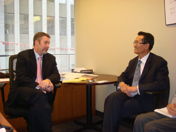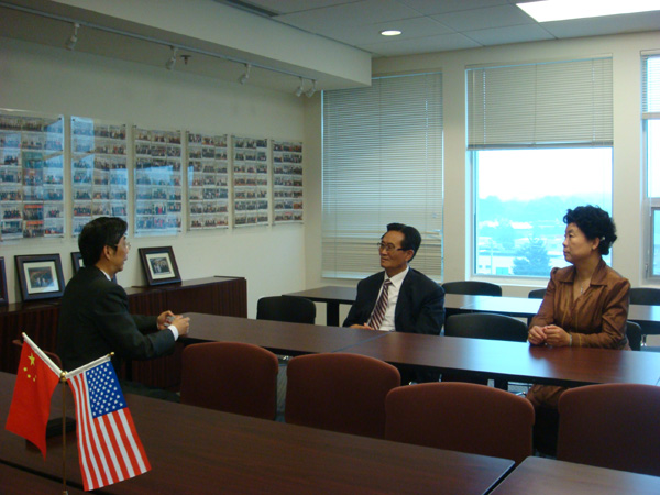 点点官网考察团正在于美国三立国际集团副总裁黄少波先生商谈