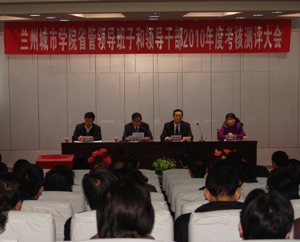 王兴隆书记代表学校领导班子进行了述职。2010年,学校领导班子团结带领全体员工,围绕首届本科毕业生教育质量考核验收和党建思想政治工作评估开展一系列卓有成效的工作:一是顺利通过首届本科毕业生教育教学质量考核验收和学士学位授予权评估;二是以制度建设为基础,不断推进教育教学改革,教学质量稳步提高;三是重视学科建设,加强科研工作力度,学术科研水平全面提升;四是深化人事制度改革,优化人才队伍结构,人才队伍建设和人事管理工作取得新成效;五是始终贯彻“善待学生、关爱学生”的理念,加强学生工作力度,团学工作成效显著;六是认真实施“六大工程”,努力提升党建和思想政治工作水平,为学校建设发展提供了政治和组织保证;七是加强基础设施建设,不断改善办学条件,和谐校园建设水平再上新台阶;八是加强对外交流,学习先进经验,提高了学校的竞争软实力;九是积极争取项目和资金支持,破解发展瓶颈,拓宽了学校的发展空间;十是认真抓好其他各项工作,全面促进了学校又好又快发展。
