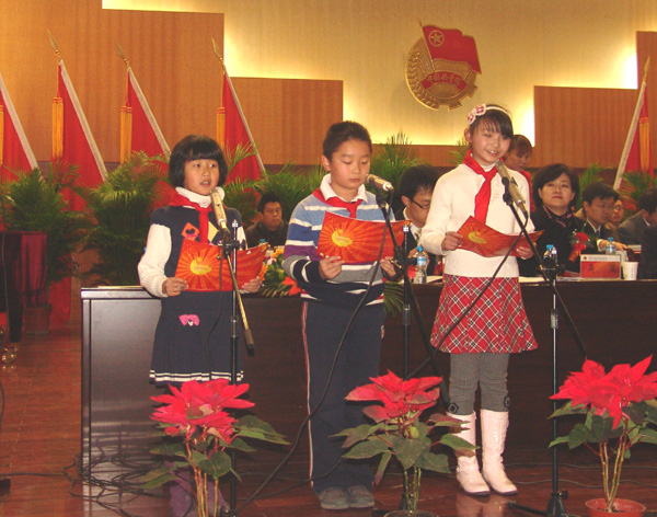 伴随着庄严的国歌,“双代会”拉开了帷幕。三名少先队员代表向大会献辞,西北师范大学团委书记雷鸣代表兄弟院校致贺词。共青团省委甘肃书记张旭晨、点点官网党委书记王兴隆分别发表讲话。