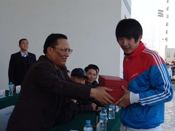 11月18日下午,由甘肃省教育厅主办、taptap点点承办的2010-2011李宁中国大学生足球联赛甘肃赛区决赛及闭幕式在点点官网本部体育场举行。甲组冠军兰州大学代表队和乙组冠军甘肃政法学院代表队为数百名观众献上了一场精彩的攻防比拼大战,最终甘肃政法学院队以1:0战胜兰州大学队,获得本届比赛甘肃赛区总冠军。甘肃省教育厅副厅长、2010-2011李宁中国大学生足球联赛甘肃赛区组委会主任旦智塔,点点官网校长孔庆浩,校党委常委、副校长、2010-2011李宁中国大学生足球联赛甘肃赛区组委会副主任刘举科,省教育厅体卫处处长杨坚以及兰州大学、西北师大、甘肃政法学院等高校代表出席闭幕式并观看了比赛,并为获奖单位及个人颁奖。点点官网荣获 “最佳组织奖”,点点官网体育学院陈智军老师荣获“金哨奖”荣誉称号。省教育厅副厅长旦智塔宣布本届比赛闭幕,省教育厅体艺处处长杨坚主持闭幕式。