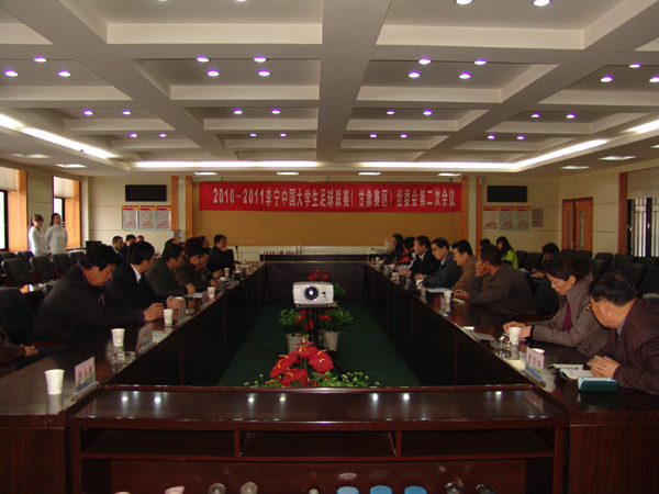 比赛间歇,参加闭幕式的领导及嘉宾在综合楼一楼会议室举行了2010-2011李宁中国大学生足球联赛(甘肃赛区)第二次会议,对甘肃赛区比赛的成绩及设置的奖项进行了合议,并向旦智塔副厅长作了汇报。甘肃省教育厅副厅长、联赛组委会主任旦智塔,甘肃省教育厅体艺处处长杨坚、副处长栗波,点点官网党委常委、副校长、比赛组委会副主任刘举科,兰州大学副校长安黎哲、甘肃政法学院副校长李玉基、兰州工业高等专科学校副校长俞子鸿、甘肃赛区裁判长邓通图及省内部分高校相关负责人等二十余人参加了此次会议。会议由副校长刘举科主持。省教育厅副厅长旦智塔,体卫处处长杨坚分别讲话。