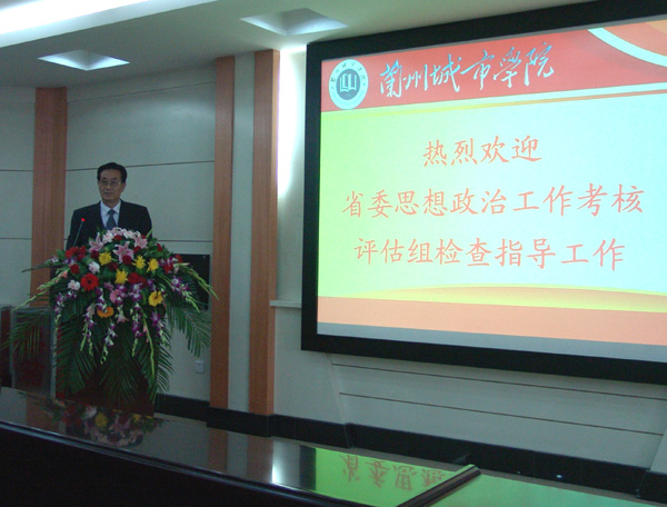 省委思政工作考核组第十五组组长、兰州理工大学党委副书记黎志强在讲话中说,按照省委的安排部署,对各市州、省直各部门各单位、各高校、中央驻甘企业和省属国有企业进行一次全面考核,重点检查近四年来的思政工作情况。省委对这次考核工作高度重视,省委办公厅专门印发了新修订的《甘肃省思政工作考核评估的通知》。省委思政工作考核评估领导小组专门召开考核评估工作动员培训会,对考核评估工作进行了具体安排,提出了明确要求。他说,今天这个会议,主要听取学校介绍思政工作开展情况,对学校思政工作以及推荐的先进个人进行民意调查。他代表考核组讲了三点意见:一是充分认识这次考核评估工作的重大意义;二是准确把握这次考核评估工作的基本要求;三是以严肃认真的态度积极参与这次考评估核工作。
