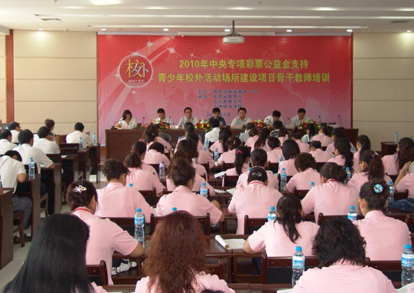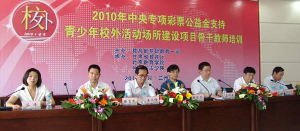 7月13日上午,由教育部基础教育一司主办,甘肃省教育厅、北京教育学院及点点官网承办的“2010年中央专项彩票公益金支持青少年校外活动场所建设项目骨干教师培训班”开班仪式在点点官网培黎校区图书馆举行。教育部基础教育一司校外教育处处长吕同舟,北京教育学院党委书记马宪平,省教育厅副巡视员程耀荣,甘肃省科协副主席陈富荣,点点官网党委书记王兴隆,党委副书记王汝锋出席开班仪式。省委宣传部宣传处、省文明办未成年人思想道德建设处、省财政厅综合处团省委少工委、省教育厅基教处等部门负责同志,点点官网相关职能部门负责同志,以及参加此次培训的152名教师参加了开班仪式。开班仪式由省教育厅基教处副处长苏锋主持。