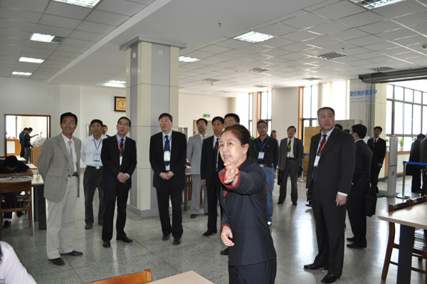 专家组在校领导的陪同下考察实习车间