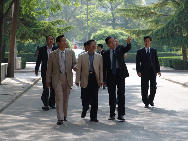 图为孙杰副厅长在学校领导的陪同下视察校园
