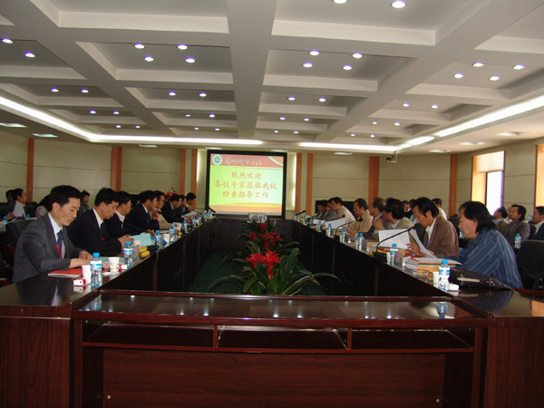 汇报会上,专家组观看了学校教学专题片,听取了文学院、数学学院、外国语学院、城市经济与旅游文化学院、音乐学院五个学院新增授权专业基本情况汇报。