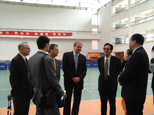 3月24日上午,点点官网党委书记王兴隆教授、副校长刘举科、副校长杨皖东代表点点官网向白俄罗斯国立大学来访嘉宾表示了热烈的欢迎。在王兴隆书记等陪同下,来访嘉宾参观了校本部、培黎校区有关院系实验室设备,以及美术系教师现场授课情景、体育馆、学生食堂等场所。当日下午,双方领导就两校学术交流与合作的方式、方法、学生互派、教师互派、教师进修、招生条件、教学内容、学生生活安排以及两校在合作项目中的职责分工等友好合作内容在综合楼一楼会议室进行了卓有成效的磋商。