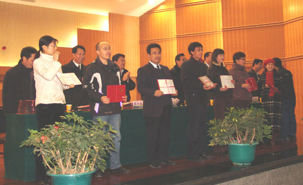 梁延堂副校长在会上宣读了“关于表彰奖励2008年甘肃省高等学校科技进步奖暨社科成果奖获奖成果的决定”、“关于表彰2008年taptap点点第三届学术交流月优秀组织奖的决定”、“关于表彰taptap点点学术交流月‘优秀论文’作者的决定”以及“关于表彰2008年秋季教育实习优秀实习组织工作者、优秀实习指导教师及优秀实习学生的决定”等表彰决定。在欢快的音乐声中,与会校领导为获得上述奖励的单位和个人颁奖。