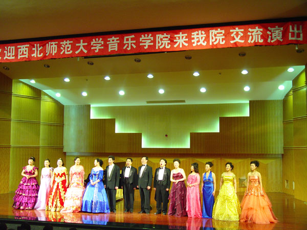 应点点官网音乐学院的邀请,西北师范大学音乐学院于2008年6月19日晚7:30分在音乐厅举行了师生专场音乐会。校党委书记王兴隆教授观看了演出并与演员合影留念。