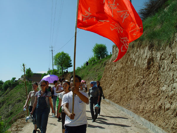 慰问团一行33人,到达东乡后,联系到了在当地支援的美国人丁大卫夫妇,在大卫先生的带领下,同学们到了其中一所希望小学。为那里的师生献上了精心准备的节目。丁大卫的夫人也为大家表演了一支新疆舞,赢得了大家的阵阵掌声,节目表演结束后,062班全体同学带领希望小学的同学们一起跳起了欢快的舞蹈,联欢会结束后,062班的同学们向希望小学的同学们赠送了许多文具,希望他们好好学习,多学知识,将来做对祖国有用的人。