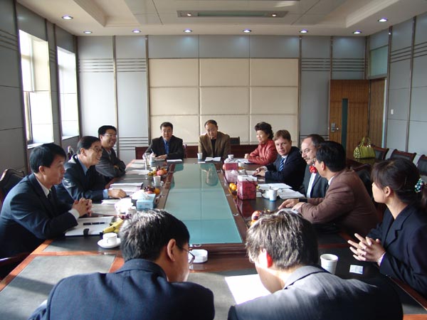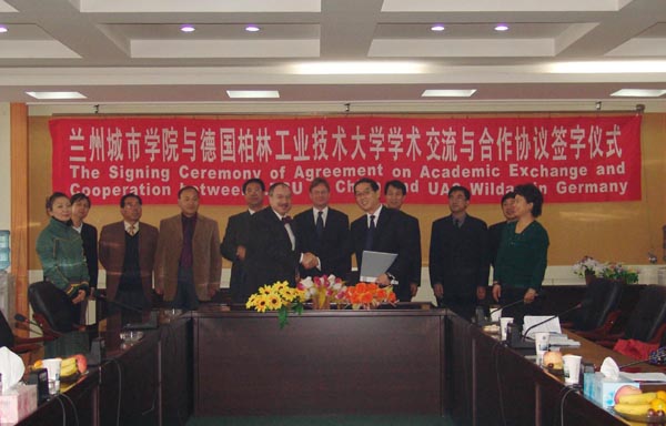 当日下午,院长孔庆浩、副院长马振林、梁延堂就两校建立学术交流与合作关系事宜在综合楼会议室与威都工业技术大学副校长Hertbert Sonntag教授及Jurgen Wagenman教授进行了商谈,内容包括双方的合作方式、合作专业方向、选派条件、教学内容、学生互派、教师互派、生活安排以及双方在合作项目中的职责分工等项内容。双方学校的领导在互派师生的英语水平方面进行了严谨细致的讨论,德方最终接受了我院的建议及合作条件,并于10月30日11点共同签署了合作协议。