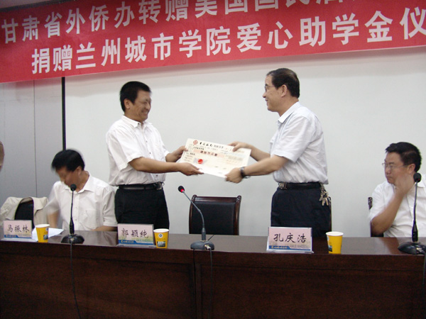 孔庆浩院长在捐赠仪式讲话。他希望,受到资助的同学能以一颗感恩的心,一颗自强的心,明礼修身,弘扬美德,刚健不息,奋发有为,以拳拳爱心、优异成绩和良好表现回报社会各界对他们的亲切关怀,回报捐赠公司对他们的博爱情谊,回报学校对他们成才的殷切期望!