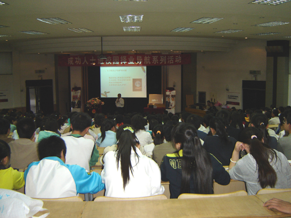 6月19日晚,由校团委、学生会主办的“成功人士进校园择业导航”系列讲座活动的首场演讲在大学生活动中心举行。兰州新家园投资集团董事长何勇先生以“如何‘卖’掉你自己”为题目,根据自己的切身体会,并以如何求得成功为主线,讲述了大学生择业的方法。两个小时的演讲掌声不断,整个会场激情洋溢。演讲结束后,校团委书记杨海东老师为何勇先生与甘肃行动成功企业咨询有限公司总经理付开虎先生,颁发了“taptap点点大学生素质拓展行动指导教师”的聘书。