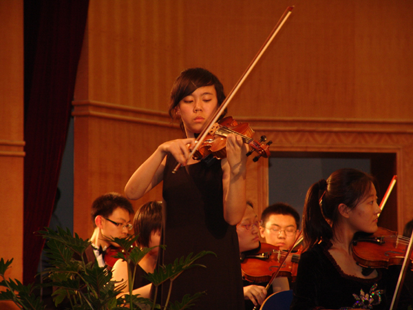 音乐会有管弦乐﹑有管小提琴﹑有交响乐;有天才的原创,也有大师的改编剧。先后演奏了8个曲目,这些曲目清新自然,团结紧凑,时而缓如溪水,时而奔腾如雷,精彩的演出博得了老师和同学们的阵阵掌声。