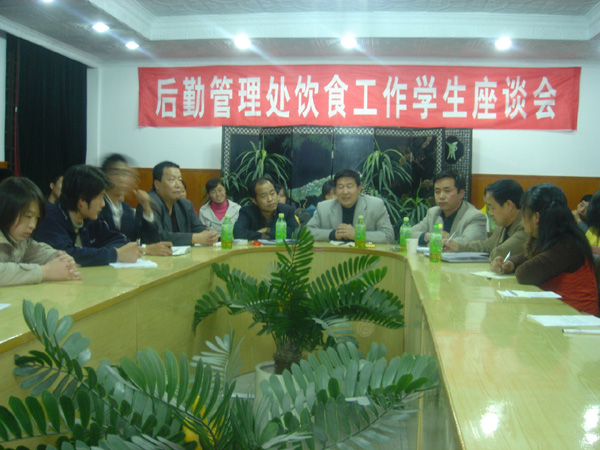 根据学校的安排,后勤管理处分别于11月9日和11月14日晚召开西校区和东校区学生会生活部、各院系学生会生活部以及各班生活委员座谈会,后勤处领导和饮食中心的负责人与同学们一起座谈。会上同学们就学校的饮食情况以及生活中存在的一些问题踊跃发言,后勤处领导针对同学们提出的问题进行一一解答,并提出一些整改措施。