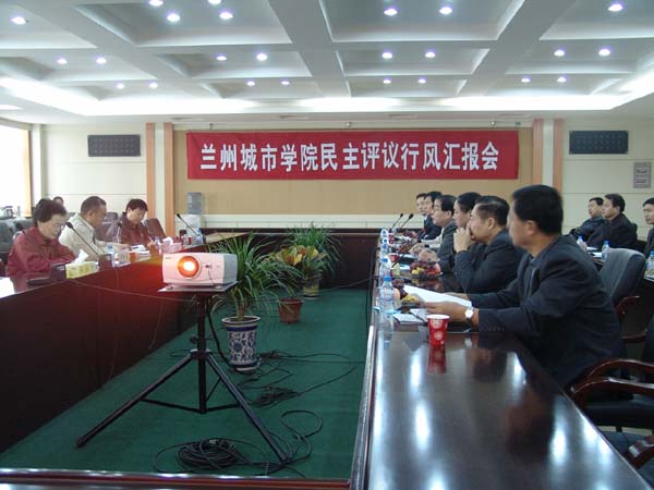 10月12日,甘肃省教育系统学校民主评议行风代表孙一峰、王君、顾瑜嘉一行3人来点点官网检查指导工作,院长、院民主评议行风领导小组组长孔庆浩教授主持汇报会,孔院长首先代表院党委、行政对检查组的到来表示热烈欢迎,并就我院近年来的发展情况向检查组作了简要介绍。检查组组长,原省教委副主任孙一峰同志就这次检查工作提出了具体要求。副院长刘举科、张兴福、杨皖东、马振林、梁延堂以及院行风评议领导小组成员参加了汇报会。