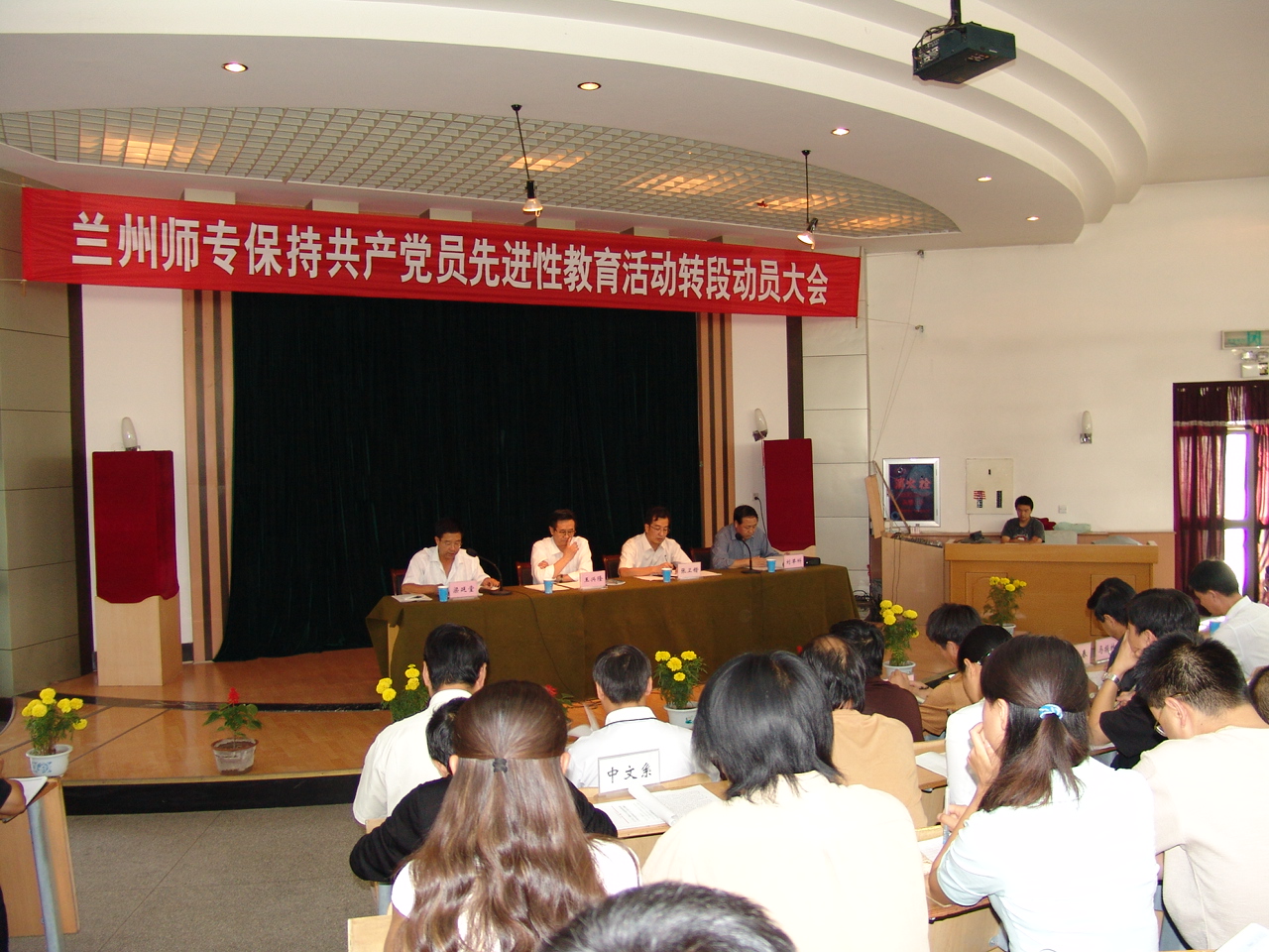 9月6日下午,兰州师专召开保持共产党员先进性教育活动转入分析评议阶段动员大会。校领导、省委第二督导组全体成员及全校500余名党员参加了大会。会议由党委委员、副校长刘举科同志主持。