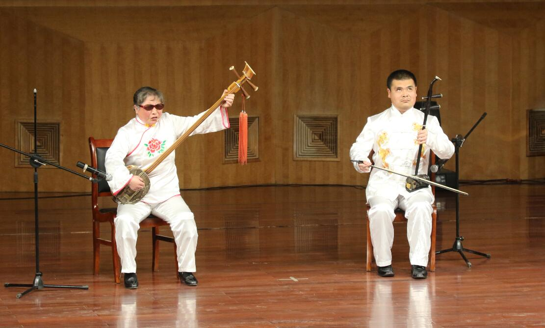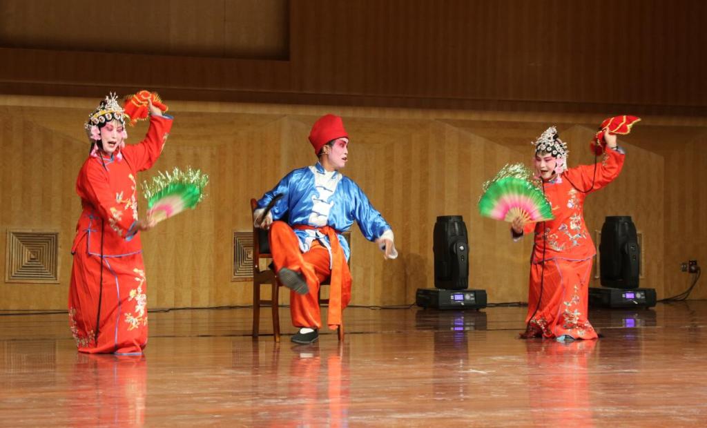 展演音乐会上,国家级非遗项目传承人杨兰芳(凉州贤孝)、秦生军(华锐藏族民歌)、杨门元(攻鼓子),省级非遗项目传承人叶长祥(民勤小曲戏)、钟长海(古浪老调)、潘竞瑞(民勤唢呐)、董永虎(凉州贤孝)等分别表演了国家级非遗项目凉州攻鼓子、凉州贤孝《八件衣》选段和《三姐拜寿》选段、华锐藏族民歌等,省级非遗项目民勤小曲戏《双下川》、民勤唢呐《三环套月》、古浪老调《大赐福》以及市级项目《西凉乐舞》等。同时,在演出中还穿插了武威市其他“非遗”项目展示,如剪纸、绣球、服饰、唐卡等。精彩的演出使在场师生献上了文化盛宴,产生了积极的影响,极大地推进了“非遗”项目进校园和非物质文化遗产的保护与传承。