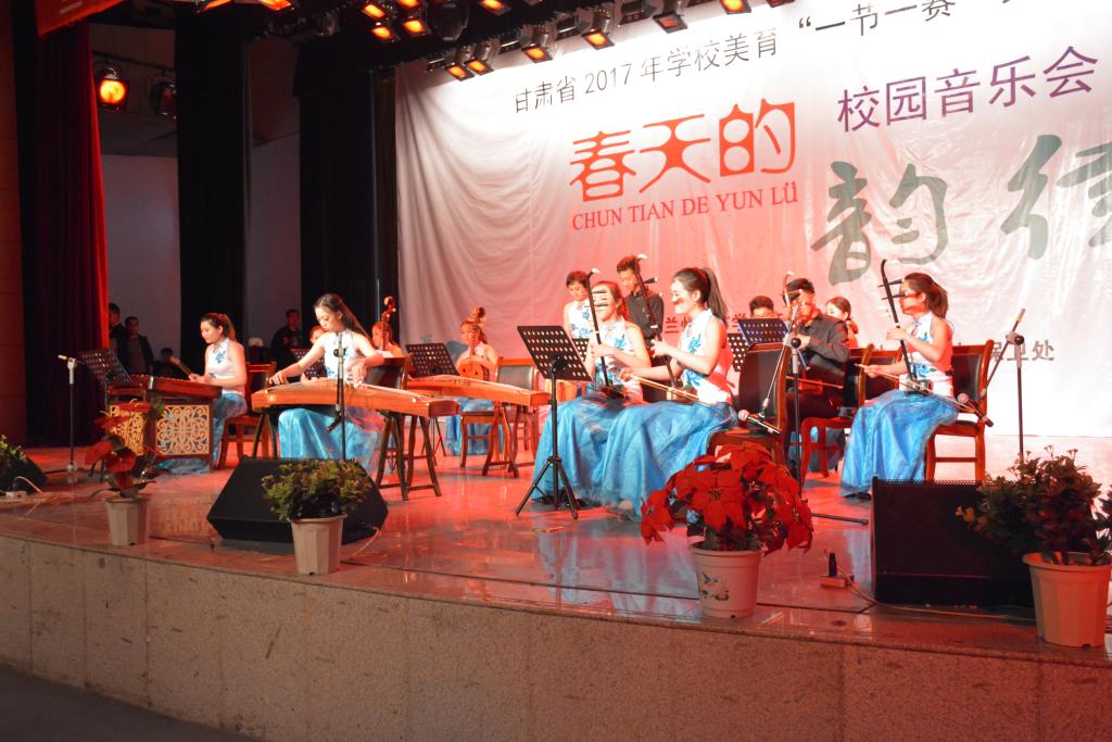 校园音乐会在民乐合奏《拔根芦柴花》中拉开帷幕,《斯堪维亚的旋律》、《西部情歌》、《荷塘月色》、《等你的365天》、《东方红》、《把一切献给党》等中外经典曲目和舞蹈《古扎丽古丽》、《版纳印象》、《草原英雄》,话剧《星火传承》相继上演。演员们精湛的音乐技艺与出色的表演深深折服了在场听众,整场音乐会气氛热烈、掌声不断。