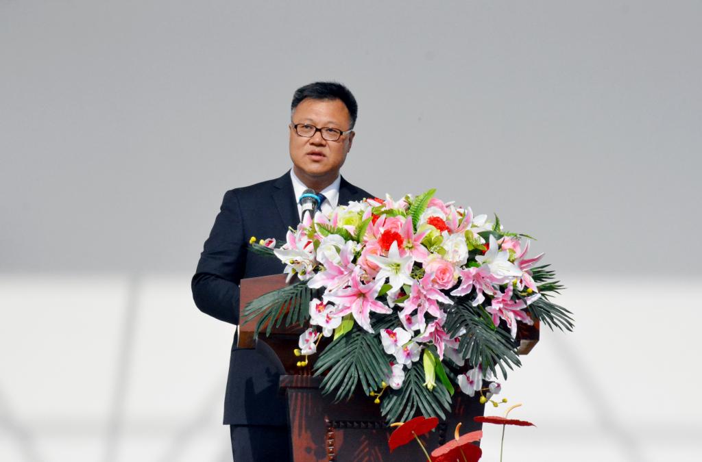 校长陈晓龙致开幕辞。他代表学校向本届运动会的召开表示热烈的祝贺!向精心筹备本届运动会的组委会工作人员表示衷心的感谢!向积极参与本届运动会的运动员、教练员和裁判员以及广大师生致以诚挚的问候!他指出,田径运动会既是对学校体育工作成果和师生体育素质的一次集中检阅,更是全校师生员工奋发进取和团结合作精神的一次全面展示。希望学校师生员工以饱满的热情积极参与,运动员们要以昂扬的斗志投入比赛获得好成绩,裁判员们要以认真负责的态度公正执法,工作人员要忠于职守、热情服务、保障安全,把本届运动会办成凝心聚力的大会、和谐快乐的盛会;希望通过举办运动会,让每一位师生员工切实树立起积极健康的体育价值观,让身心健康成为一种追求,让体育锻炼成为一种习惯,在全校形成珍视健康、热爱运动、积极向上的良好氛围,让大家深刻铭记持续践行:每天锻炼一小时,健康工作五十年,幸福生活一辈子;希望同学们能够磨砺意志,把顽强拼搏自强不息的体育精神带入到读书学习中,奋发向上汲取知识成就自我;希望老师能够振奋精神,把勇于竞争超越自我的体育精神带入到学科专业建设中,努力工作,爱校荣校,促进学校转型发展。