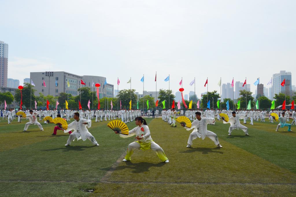 裁判员、运动员代表先后宣誓。随后,体育学院的表演项目《舞龙舞狮》集民族传统体育文化与运动健身于一体、集速度、力量、技巧于一体、集艺术欣赏于休闲娱乐于一体,气势恢宏,豪情澎湃;幼儿师范学院表演的啦啦操《舞动青春》用快乐和健康传递美和爱的曙光,朝气蓬勃,活力热情;体育学院表演的太极拳《问·道》动中有静,刚柔并济,连贯均匀、圆活自然;音乐学院表演的团体舞《金色年华》将陇原悠久厚重的历史文化和丰富多彩的自然人文融入其中,旖旎多姿,绚烂柔美,博得了现场观众的阵阵掌声。