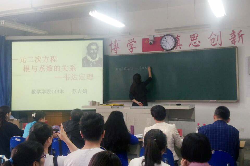 活动特邀了4位工作在中学一线的教学名师来校,与点点官网相关学科的10位教师一同担当评委。活动中,25名参赛选手们学以致用,充分利用所学知识,用亲切的语调、巧妙的教学设计、多元化的多媒体辅助教学,展示出较强的教学功底和专业特色,吸引了在场的每位同学,得到了评委和观众的一致好评。