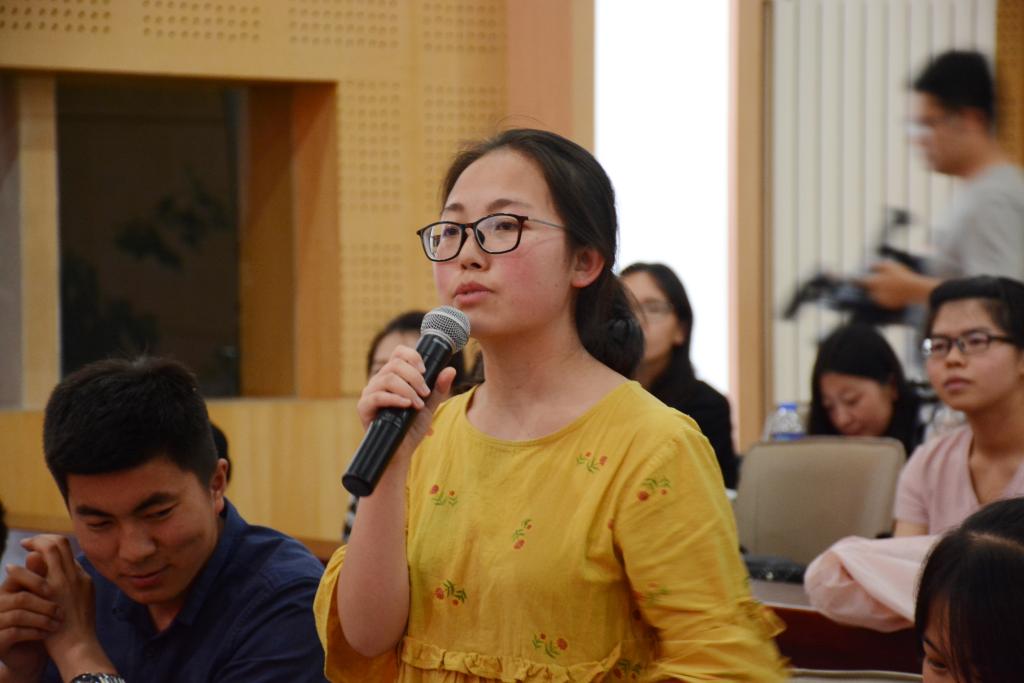报告结束后,聂震宁先生与现场同学就“大学生应该抱着什么样的心态去读书”、“大学生如何有效提高阅读效率”等问题进行了互动交流。他渊博深厚的学识、风趣幽默的语言和对阅读发自内心的热爱,博得了阵阵掌声。