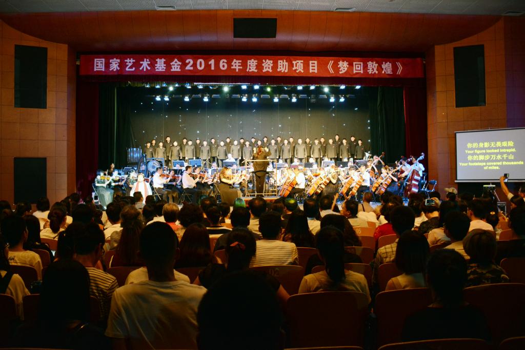 6月13日晚,国家艺术基金2016年度资助项目——甘肃省歌剧院、甘肃交响乐团、甘肃陇韵合唱团交响合唱《梦回敦煌》专场演出在校本部大礼堂隆重上演。全校1200余名师生观看了演出。