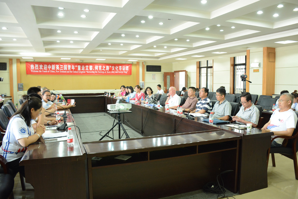 7月24日,中新英三国青年“重走艾黎、何克之路”文化寻访活动青年论坛在校本部第二会议室举行。论坛主题为“弘扬艾黎何克精神,推动一带一路建设”。甘肃省政府外事办党组成员、甘肃省友协专职副会长刘晓林,甘肃省政府外事办友城处处长朱玉明,中国工合国际委员会副主席Tim Zachernuk以及文化寻访团全体成员参加论坛。校党委常委、副校长赵有翼会见了文化寻访团全体成员。