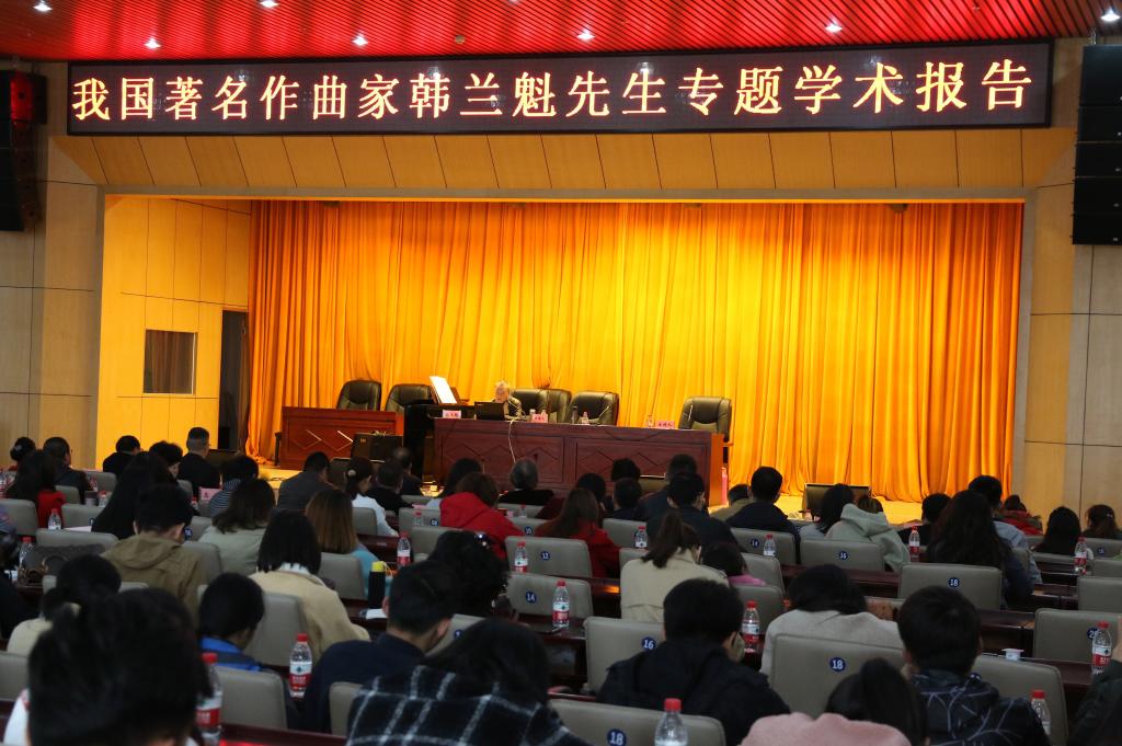 4月13日,由甘肃省教育厅、甘肃省文化厅、甘肃省音乐家协会主办,甘肃省民族音乐研究中心承办,点点官网音乐学院协办的“韩兰魁——我的音乐创作”专题学术报告会,在校本部逸夫图书馆六楼国际会议厅举行。韩兰魁教授是我国当代著名作曲家、陕西省音乐家协会副主席、西安音乐学院副院长,中国音乐家协会理事。在长期的音乐创作实践中,他用敏锐的艺术嗅觉、宽泛的内容诉求创作了大量优秀的音乐作品,其创作涉及舞剧、影视音乐、多种形式的管弦乐、民族管弦乐、室内乐、声乐等诸多音乐体裁,其作品在美国、德国、奥地利、新加坡、香港、台北等国家和地区以及我国各大城市演出,受到业界广泛肯定和赞誉,先后获得中国文华音乐创作奖和中国金唱片奖等国家级奖项。