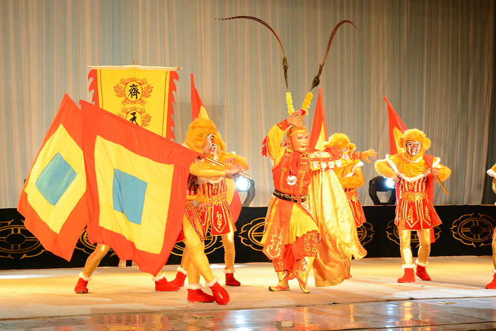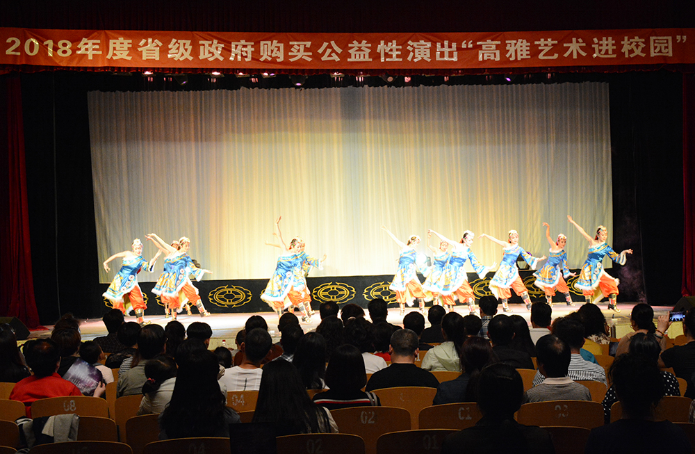 5月3日晚,甘肃省陇剧院为师生奉献了一场综艺演出。整台晚会囊括了舞蹈、戏曲、民乐、歌曲等多种艺术形式。演出在舞蹈《盛世中国》的欢快旋律中开场,国家一级演员、梅花奖获得者窦凤霞、佟红梅两位艺术家分别演唱了戏曲《梨花颂》和《龙凤呈祥》,她们以声带情、声情并茂的高超表演技巧,赢得观众热烈掌声;唢呐演奏家敬怀珠的《好汉歌》和二胡演奏家张智军的《战马奔腾》将豪情挥洒的淋漓尽致;传统经典节目《川剧变脸》和猴戏《金猴送福》将现场气氛推向高潮;精彩的节目最后在藏族舞蹈《扎西德勒》的优美舞曲中落下帷幕。