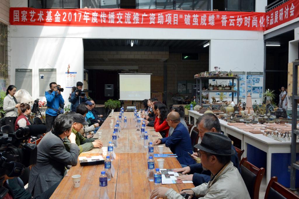 莫超宣布:国家艺术基金2017年度传播推广资助项目“‘破茧成蝶’香云纱时尚化作品展”兰州站开幕。