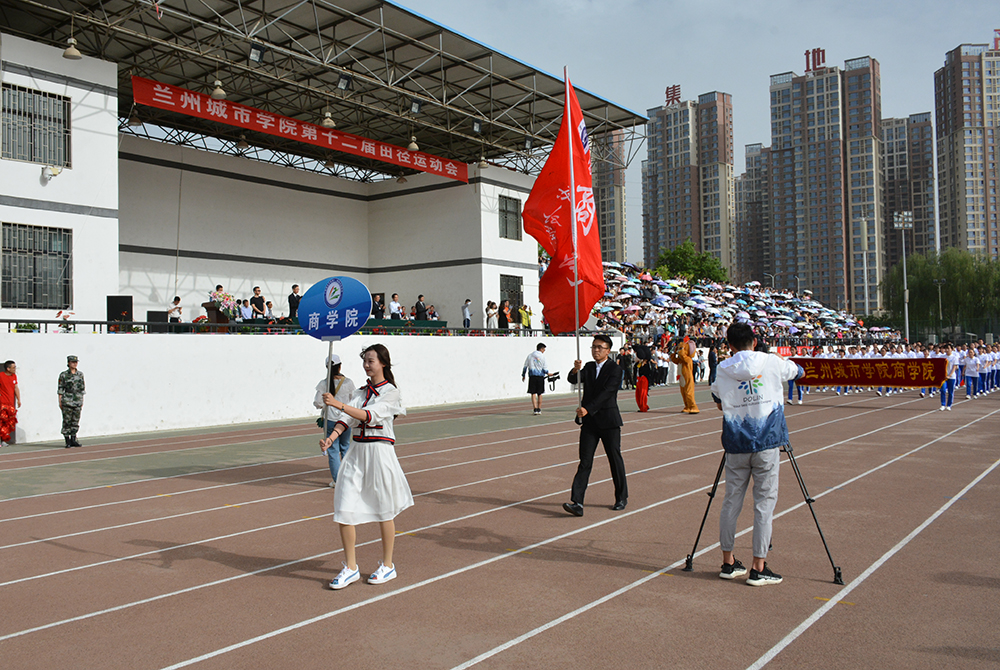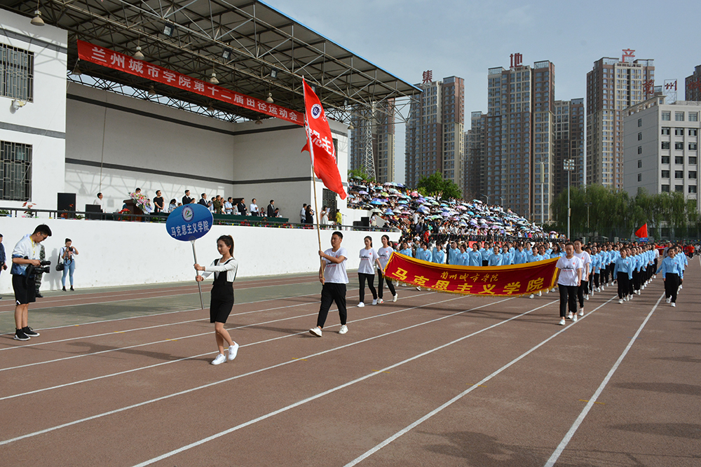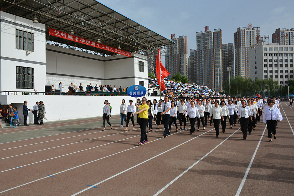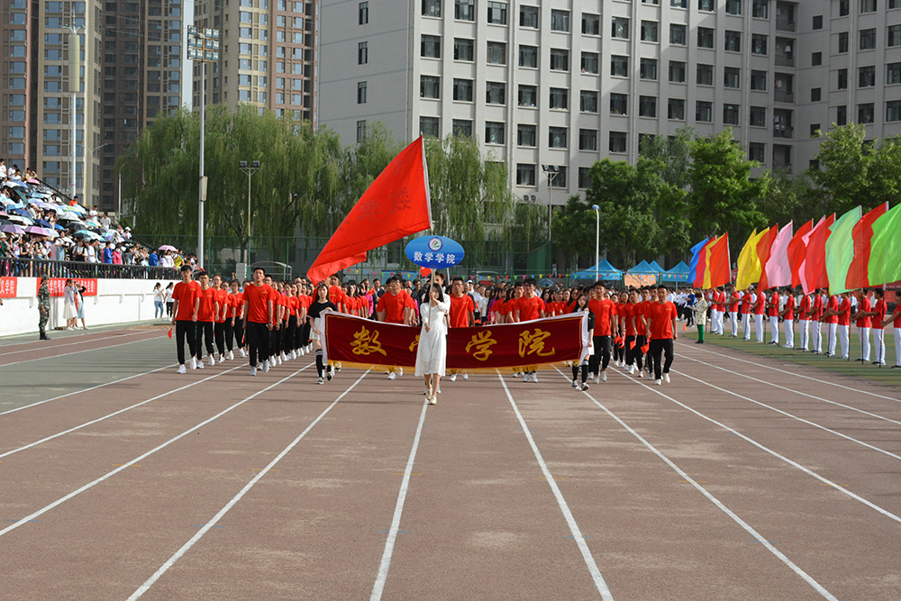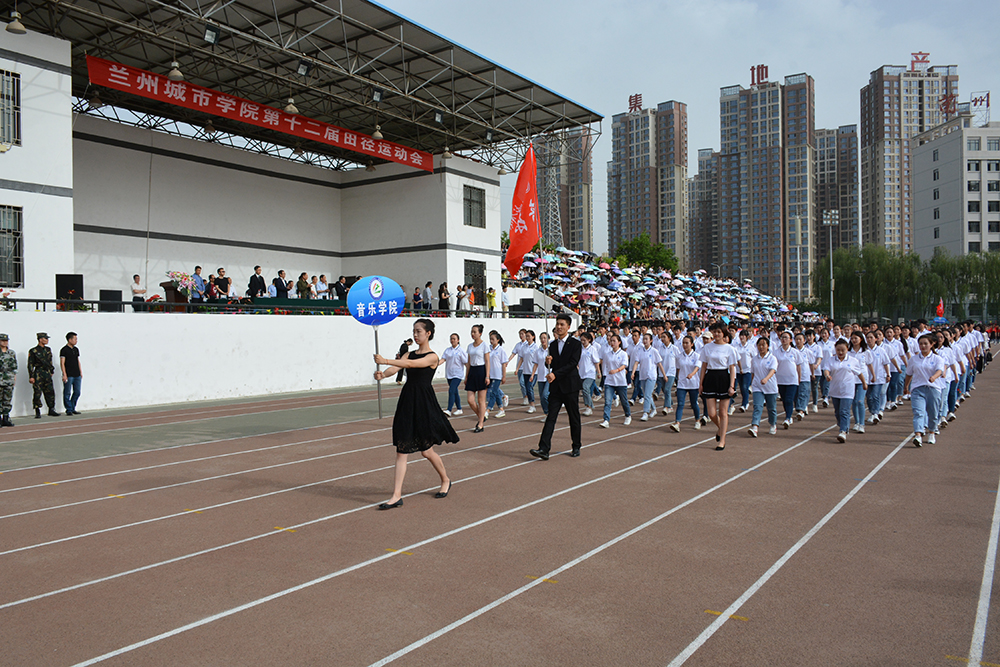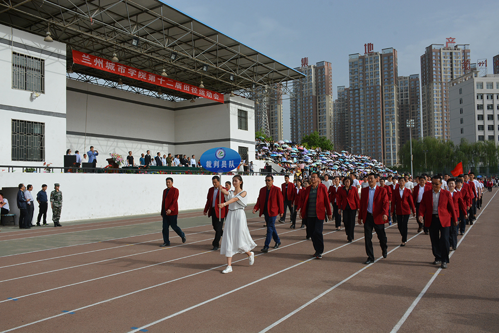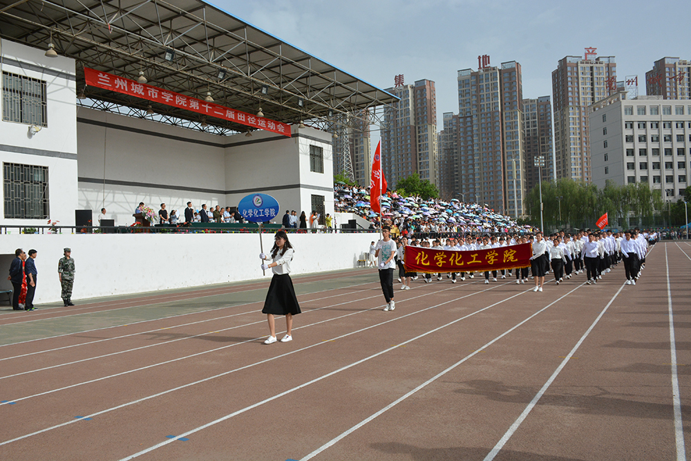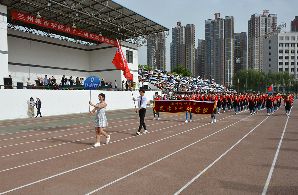在欢快激昂的运动员进行曲中,国旗队、会徽队、校训队、彩旗队、表演队、裁判员队伍和各学院、各单位代表队精神抖擞,意气风发,步伐整齐,喊着嘹亮的口号依次入场。