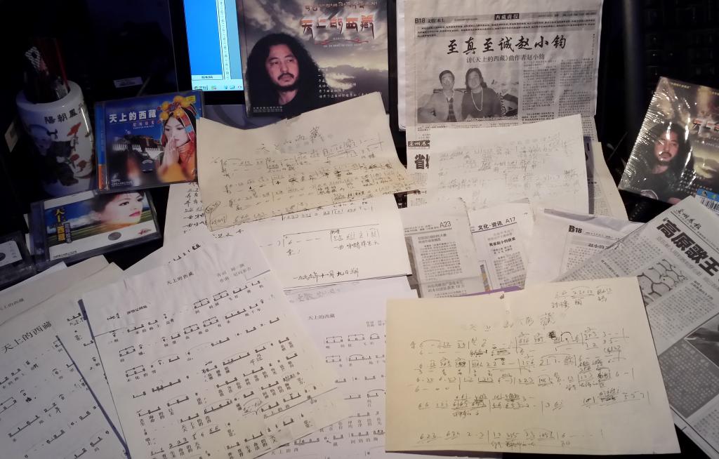 一曲《天上的西藏》旋律高亢,委婉深情,听着歌曲,思绪飘飞到青藏高原,湛蓝的天,净白的云,辽阔的草原,经幡随风飘扬,空气干净得不带一丝尘埃……这首歌由刘一澜作词,赵小钧谱曲,尼玛拉毛首唱,后有亚东、凤凰传奇等多位艺人演唱,广为流传,经久而不衰。从《天上的西藏》开始,人们逐渐认识了赵小钧。