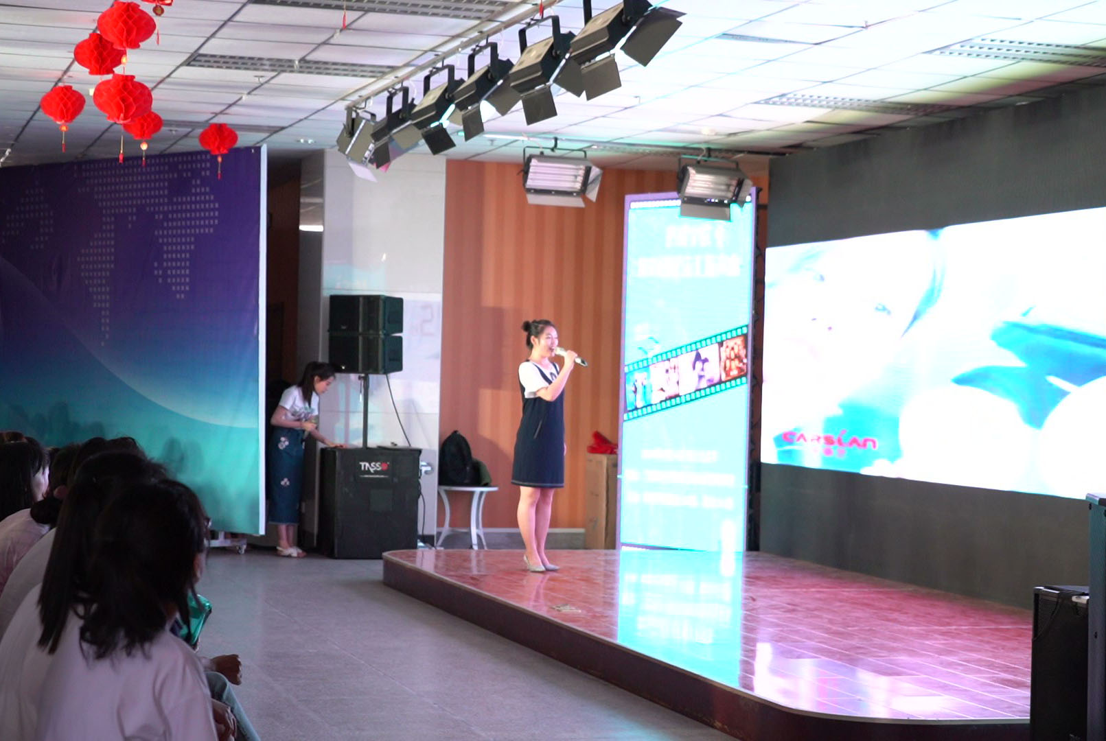演出中,配音演员选手们依次上场,用他们的声音、表演、情感,为大家呈现了一场精彩的视听盛宴,展示了兰城院播音学子们的才华。汇报演出共30个作品,分为广告配音与影视人物配音两个部分,其中广告配音14个,涉及汽车、化妆品、婴儿用品等商业广告配音和公益广告配音;影视人物配音作品16个,有《三生三世十里桃花》《甄嬛传》《三国演义》等流行影视剧的人物配音,也有《头脑特工队》《冰雪奇缘》等动画配音。