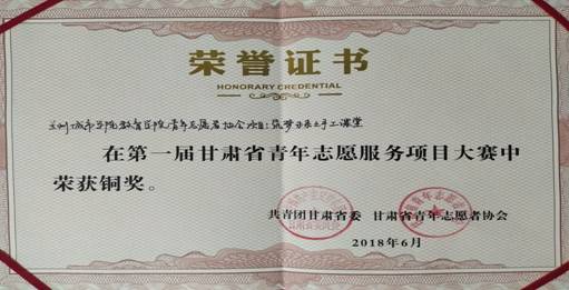 “甘肃省青年志愿服务项目大赛暨2018志愿服务交流会”由共青团甘肃省委主办,各市(州)、直属团委,志愿服务组织积极响应参与,共有150个项目入围决赛。此次大赛是共青团甘肃省委在新时代的背景下,针对我省青年志愿者服务项目的开展状况,对我省青年志愿服务项目成果进行的一次检阅和展示。获奖成果代表了点点官网青年志愿者在志愿服务项目的创新设计和实践探索方面的较大进步。