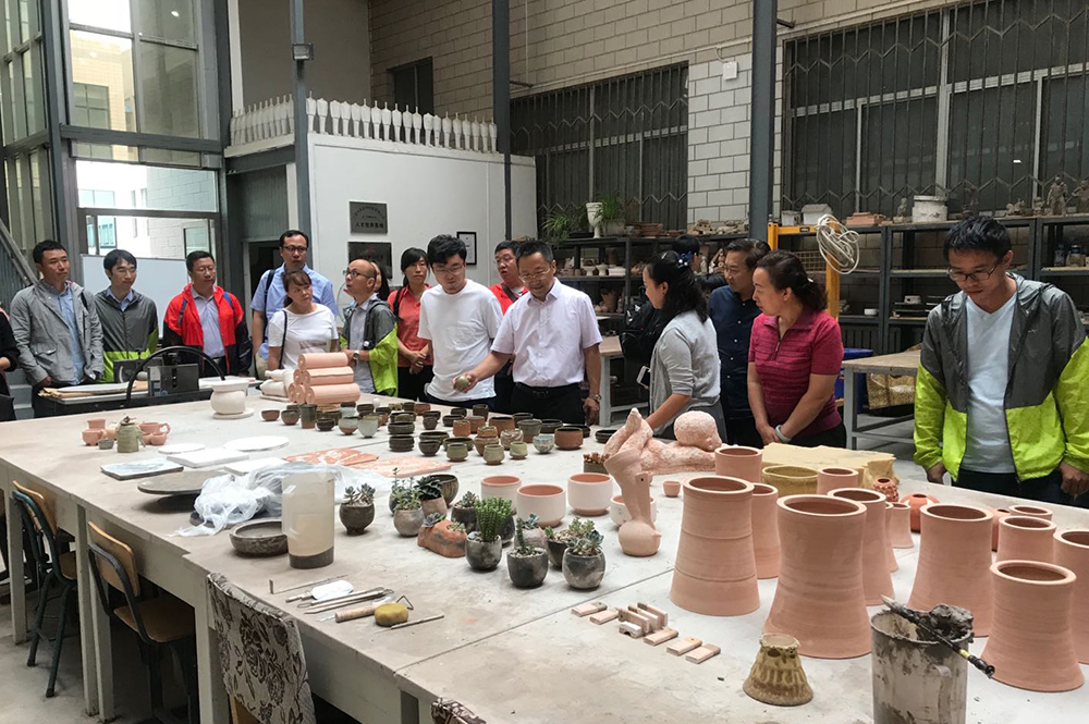座谈会前,何晓红一行在张社平陪同下参观了美术与设计学院陶艺工作室、培黎石油工程学院实验中心。