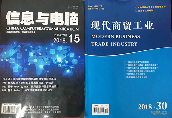 其中,商学院冉秋霞、马小钦老师指导,学生张迪展、杜岩、王舸帆、张思捷共同完成的《甘肃民族地区中小企业信贷问题研究》论文在《现代商贸工业》杂志2018年第30期发表;电子与信息工程学院高国亮、赵宇杰老师指导,学生许开杰、王静、姚登银、周悦、朱天成共同完成的《物联网环境下智慧公寓项目建设》论文在《信息与电脑》期刊2018年第15期发表。