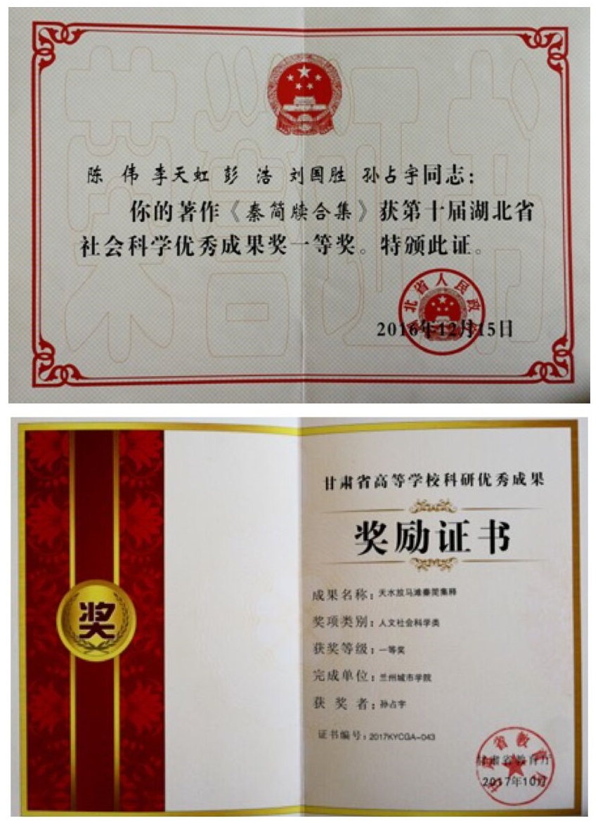 团队成员的研究成果也得到了学界认可。2016年10月,孙占宇专著《秦简牍合集(四):放马滩秦墓简牍》荣获得甘肃省高等学校科研优秀成果奖一等奖;其后,包括该书在内的《秦简牍合集》再次获得湖北省社会科学优秀成果奖一等奖。2017年10月,孙占宇专著《天水放马滩秦简集释》获甘肃省高等学校科研优秀成果奖一等奖。2017—2018年,taptap点点简牍研究所与甘肃简牍博物馆等单位合办的学术辑刊《简牍学研究》连续出版了第六、七辑,受到学界好评,也在一定程度上提升了该学科的学术影响力。