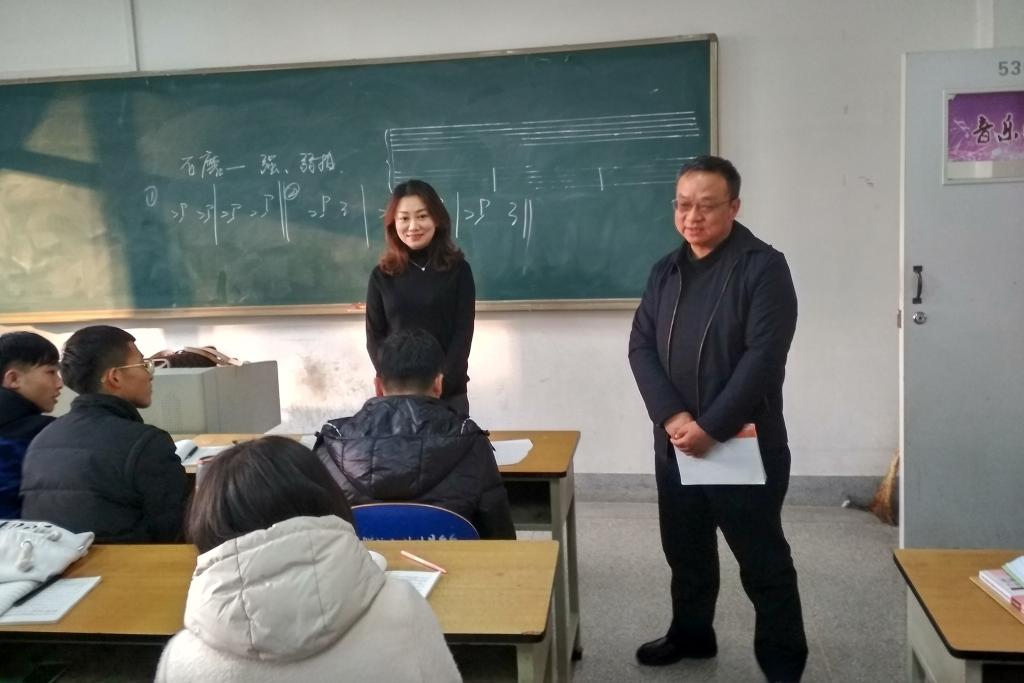 在音乐学院,张有明听课看课,观摩了容艺洋老师的《视唱练耳》课程教学活动,高度评价其教学过程,特别是师生互动的情感的投入和热烈的课堂气氛。他希望音乐学院充分运行现代教育视频技术,将优秀教师的课堂教学和课外指导活动录成视频,经常性开展观摩教学活动,加强学生的考勤管理,推进教学质量的稳步提升。