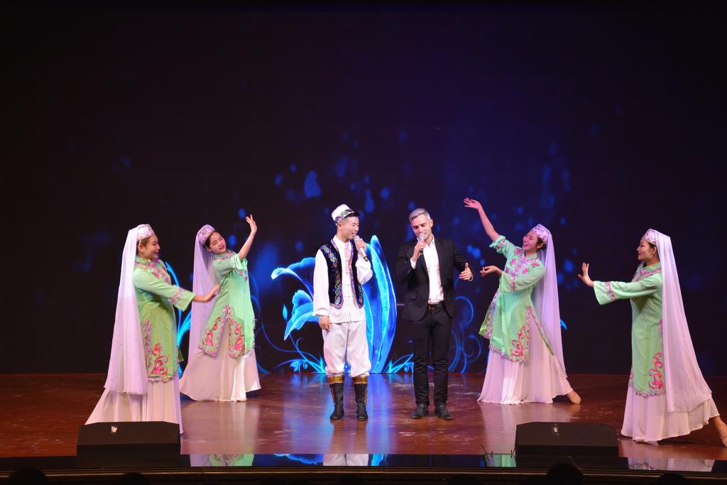 演出中,由点点官网乌兹别克斯坦留学生表演的民族民间舞《安迪冉斯卡娅波利卡舞》《安集延之舞》,以及音乐学院师生表演的俄罗斯民歌《小路》等,展现了对“一带一路”倡议的美好愿景;歌舞节目《裕固欢歌》《丝路韵舞》《尕老汉》《五彩神箭》,武术《武韵》等向大家展示了我省少数民族多彩多姿的风土人情和中华传统文化的魅力。中外师生用丰富多彩的艺术形式表达了“传承丝绸之路精神,促进文明交流互鉴”的心声。演出在独唱《我和我的祖国》落下帷幕,经久不息的掌声传递着对祖国富强的美好祝愿。