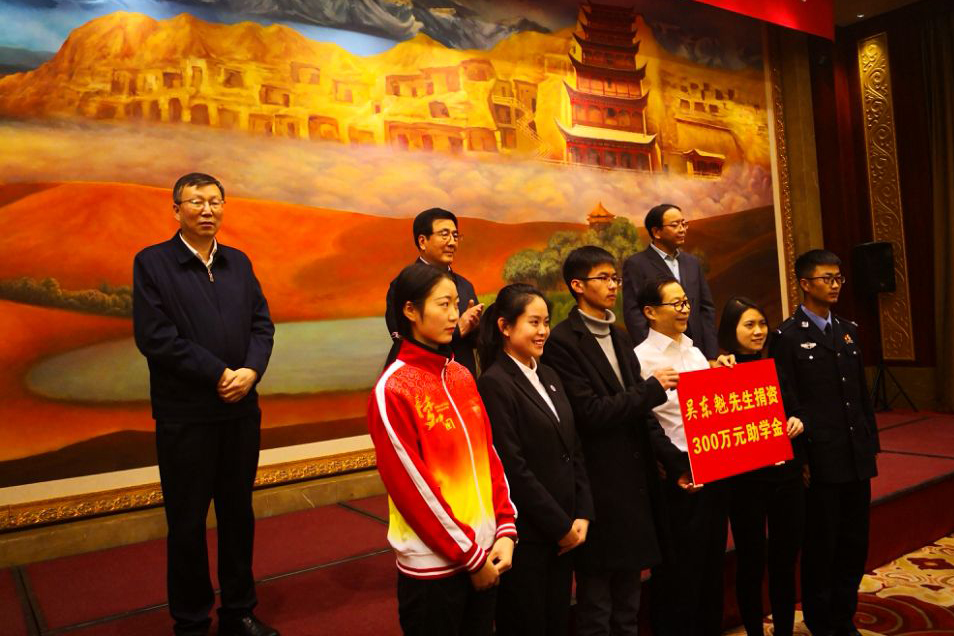12月24日下午,著名书画家吴东魁先生捐资助学仪式在兰州举行。吴东魁先生向包括点点官网在内的省属5所高校捐助300万元资金和20幅书画作品。省委书记、省人大常委会主任林铎,省委常委、省委秘书长王嘉毅,副省长张世珍出席捐助仪式。