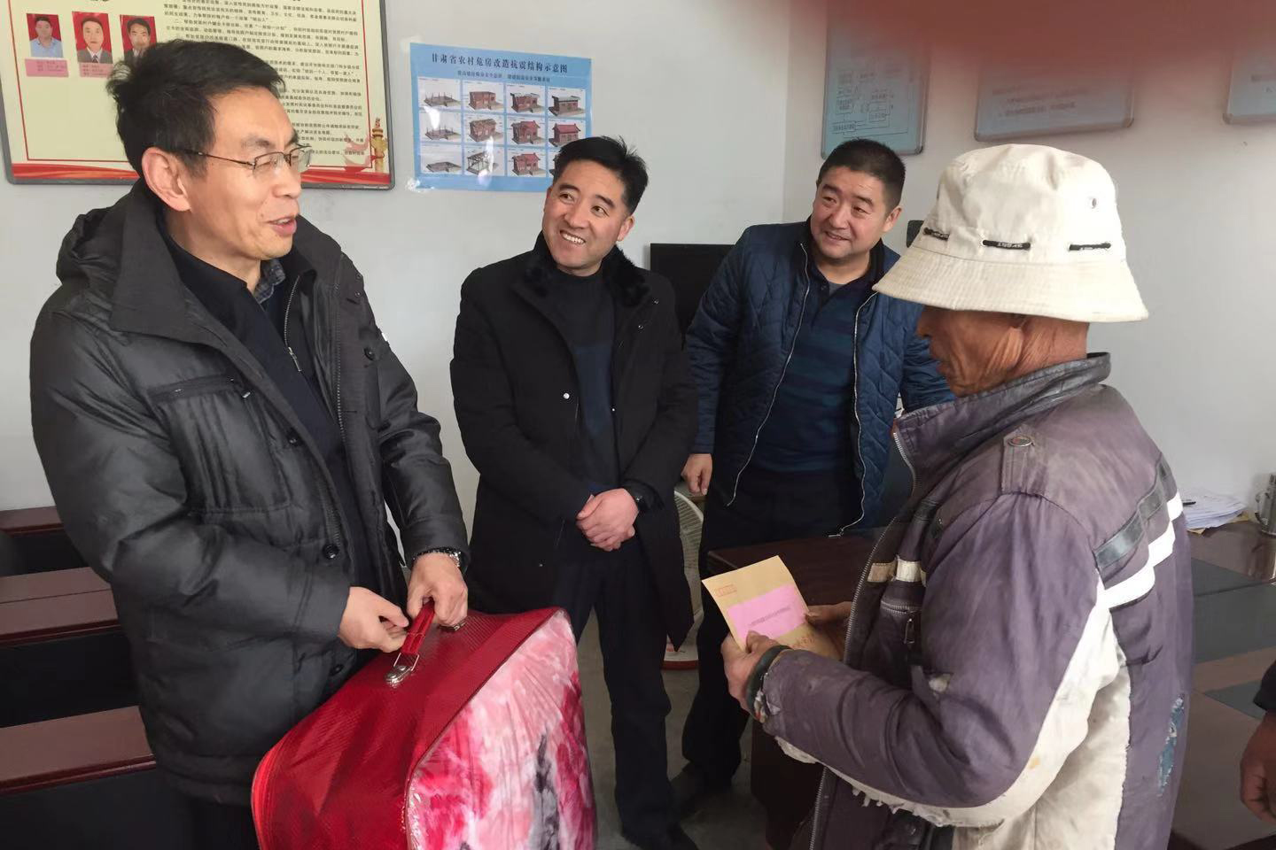 数九寒冬冷,真情暖人心。为了让农村困难群众感受到党和政府的关爱,根据甘肃省脱贫攻坚帮扶工作协调领导小组办公室《关于动员各级各方面帮扶力量做好困难群众温暖安全过冬工作的通知》(甘帮领办发电〔2018〕29号)要求,12月26日,taptap点点党委常委、副校长李慕堂率队深入秦安县郭嘉镇帮扶村开展“寒冬送温暖”活动。