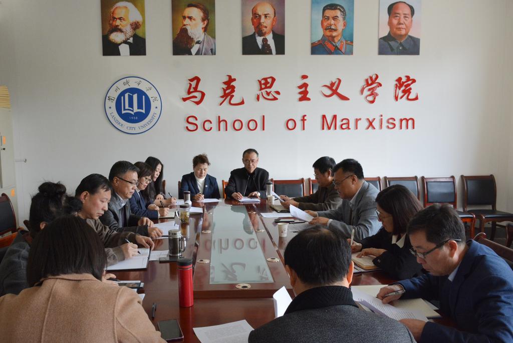 陈晓龙强调,马克思主义学院承担着全校思想政治理论课及“形势与政策”课的教学任务,要把学习、研究、阐释总书记的重要讲话精神作为首要政治任务抓紧抓好,要密切结合实际“学、思、践、悟”,在怎么研学、怎么阐释、怎么去教上下功夫、见效果。要紧密围绕“八个统一”,制定切实可行的马克思主义学科建设方案、思政课教师培养培训方案和思想政治理论课课程说明,切实推动思想政治理论课改革创新,不断增强思政课的思想性、理论性和亲和力、针对性,让习近平总书记的重要讲话精神“生根、开花、结果”。全体思政课教师要充分认识到“思政课作用不可替代,思政课教师队伍责任重大”,按照“政治要强、情怀要深、思维要新、视野要广、自律要严、人格要正”的总要求,进一步提升师德师风、学识学养,给学生心灵埋下真善美的种子,引导学生扣好人生第一粒扣子。