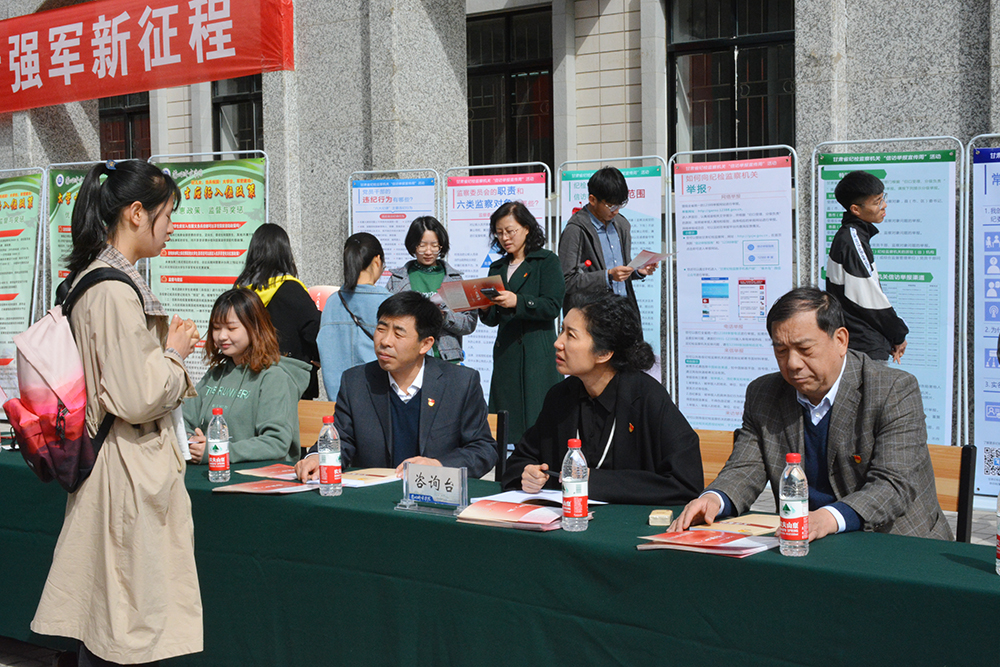 3月20日上午,校纪委办公室、监察处在校本部综合楼前设点开展宣传活动,通过横幅、宣传展板等形式,宣传信访举报知识。校党委常委、纪委书记孙光慧和学校纪检监察干部一起,向路过的师生发放《信访举报指南》,现场接受师生的咨询和举报。